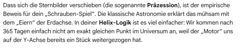 Was bereits modernen Astronomen bekannt ist, fällt die Sonne mit einer Geschwindigkeit durch die Galaxis, und die Planeten ziehen keine Geschlossenen Kreisbewegungen um sie herum, sondern eine Schraubenlinie, auch Helix genannt.
